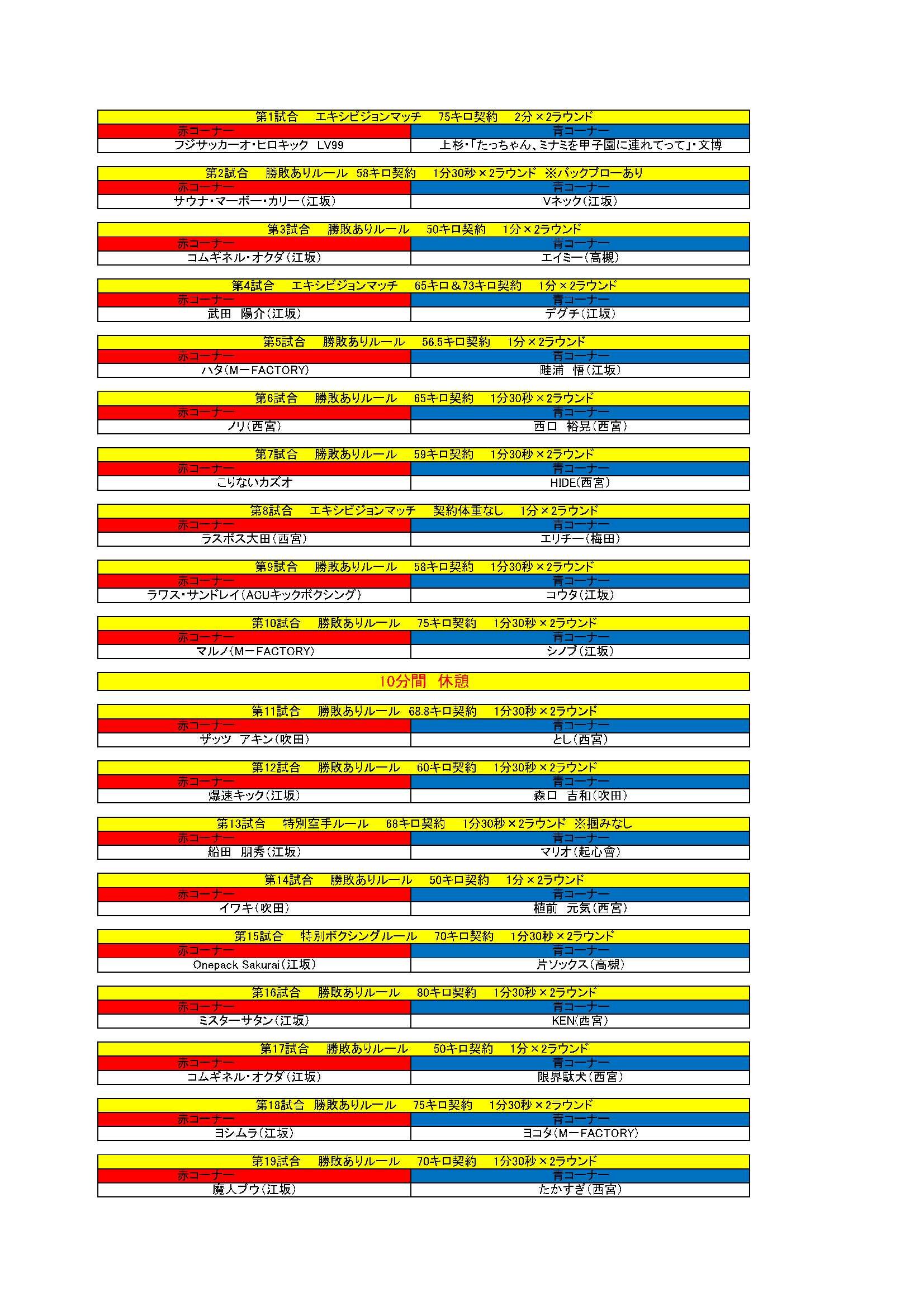 12:45  選手・セコンド入場可能、計量開始(15分程度遅れる可能性あり)